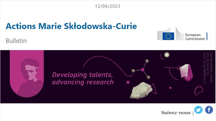 « MSCA Newsletter » pour vous informer des derniers appels lancés dans le cadre du programme Horizon Europe et plus particulièrement l’Action MSCA pour le renforcement des capacités scientifiques.